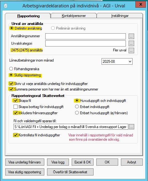 Välj vilket bolag AGI ska rapporteras för. Var noga med att du företräder rätt bolag, informationen syns högst upp på sidan.