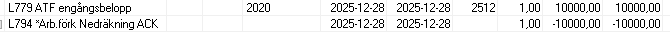 Kontrollera om någon har ATF engångsbelopp, löenart 779 och 794: