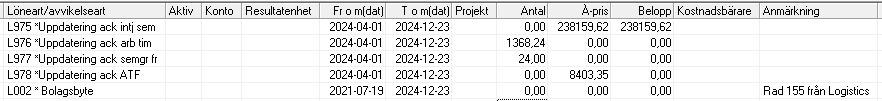 I Checklistan framgår vilka lönearter som är innevarande och i eftersläp per bolag.