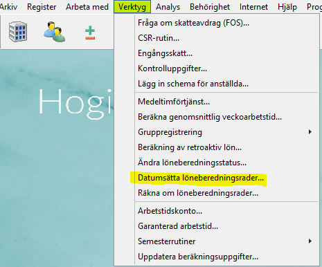 Klicka på Verktyg - Datumsätta löneberedningsgrader.