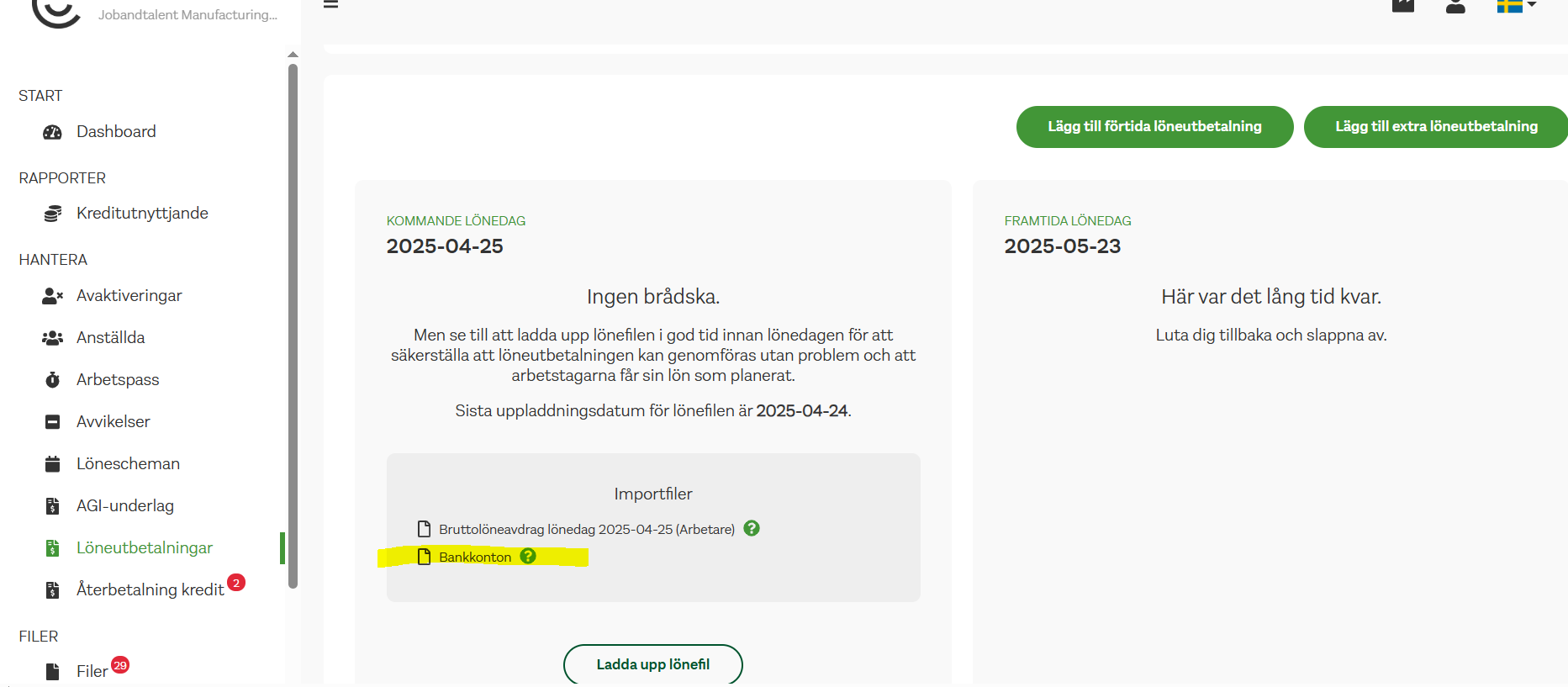Innan vi gör definitiv avräkning i Logistics, Manufacturing, Staffing South, Professional och Lager & Logistik så måste vi hämta bankkontonummer från Cappy på de som är aktiverade där och därmed ska ha deras bankkontonummer inläst i Hogia. Detta för att det är Cappy som sköter utbetalning av deras löner och de ska därför ha Cappys bankkontonummer i Hogia så att vi gör utbetalningen till Cappys bankkonton.