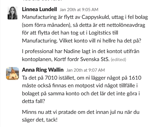 -Om den anställde har inte bytt bolag, och Cappy inte kunde dra beloppet från deras lön och därför ska fakturera oss. ska det bokföras på konto 1616: