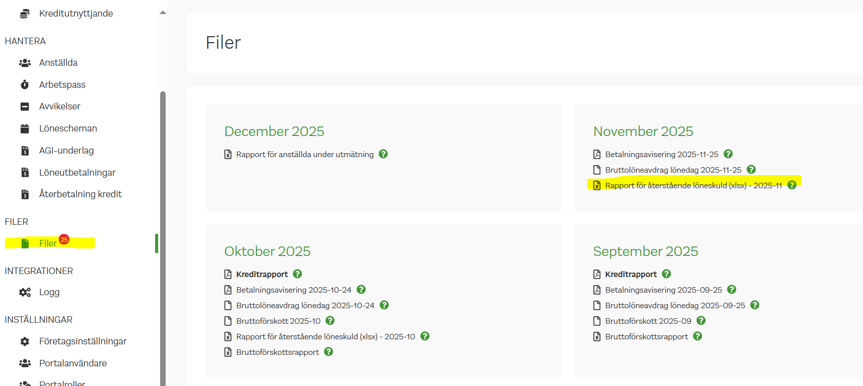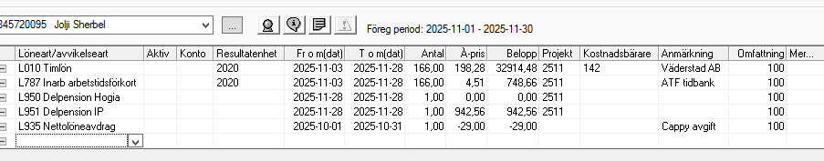 Efter man laddat upp lönefilen för november i detta fall dyker denna rapport upp.