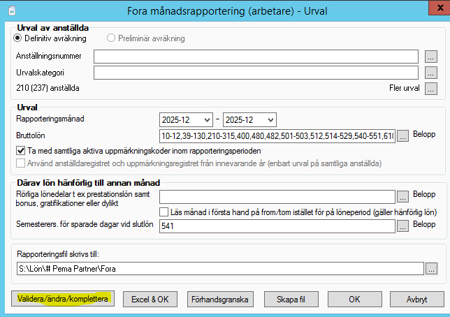 Här tror vi bocken ska vara i i Ta med samtliga aktiva uppmärkningskoder inom rapporteringsmånaden. Testa er fram vid diff.