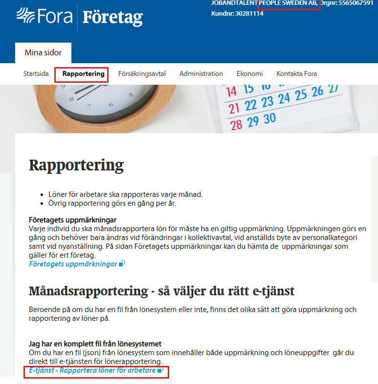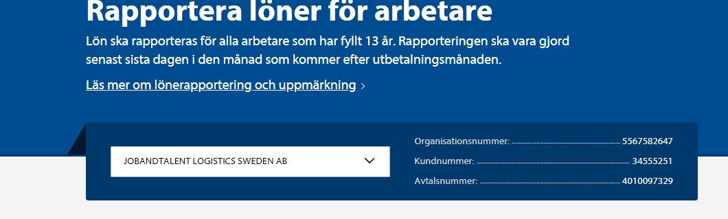 Välj bolag, rapportering och E-tjänst rapportera löner för arbetare