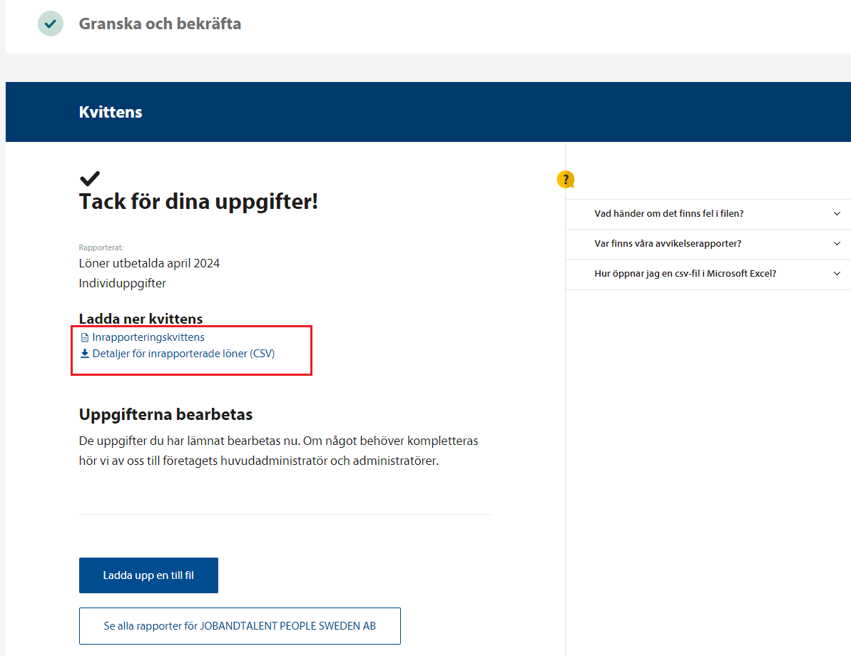Efter ca 24 h har filen bearbetats, kontrollera alla Avvikelser.