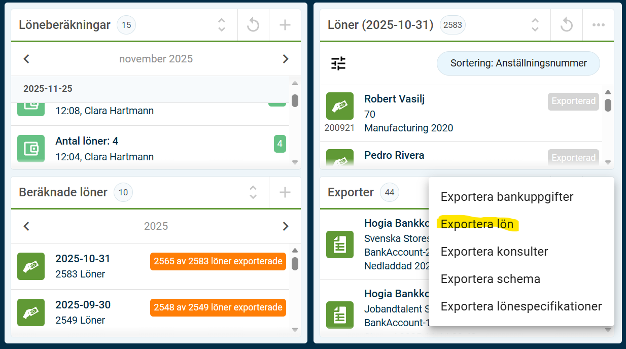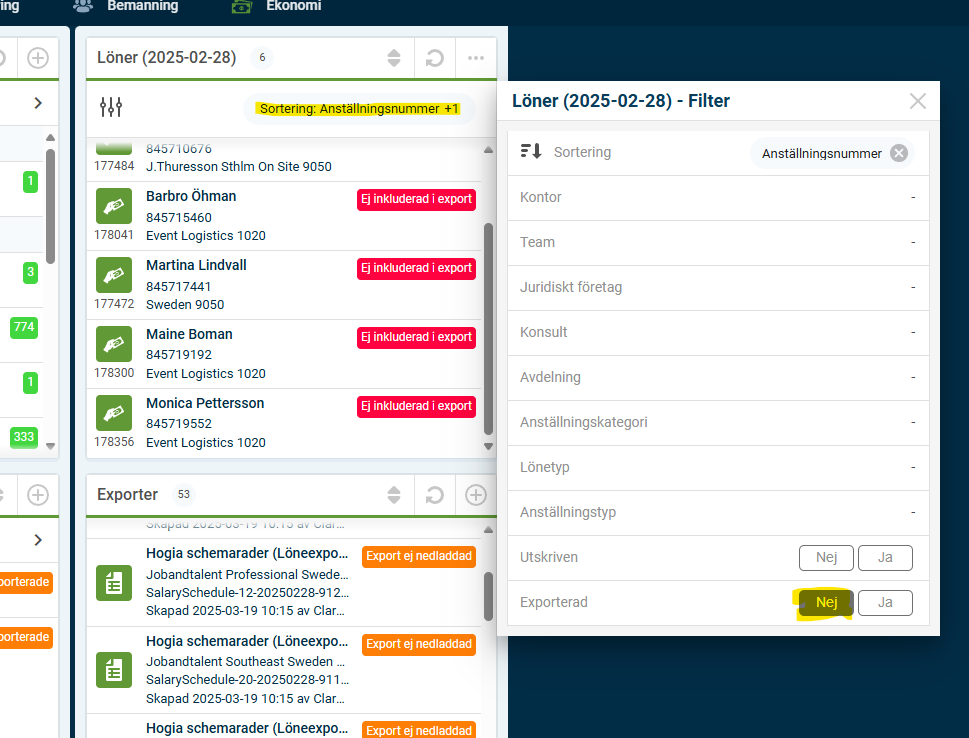 Kontrollera om det finns anställda som inte kommer med i exporten.