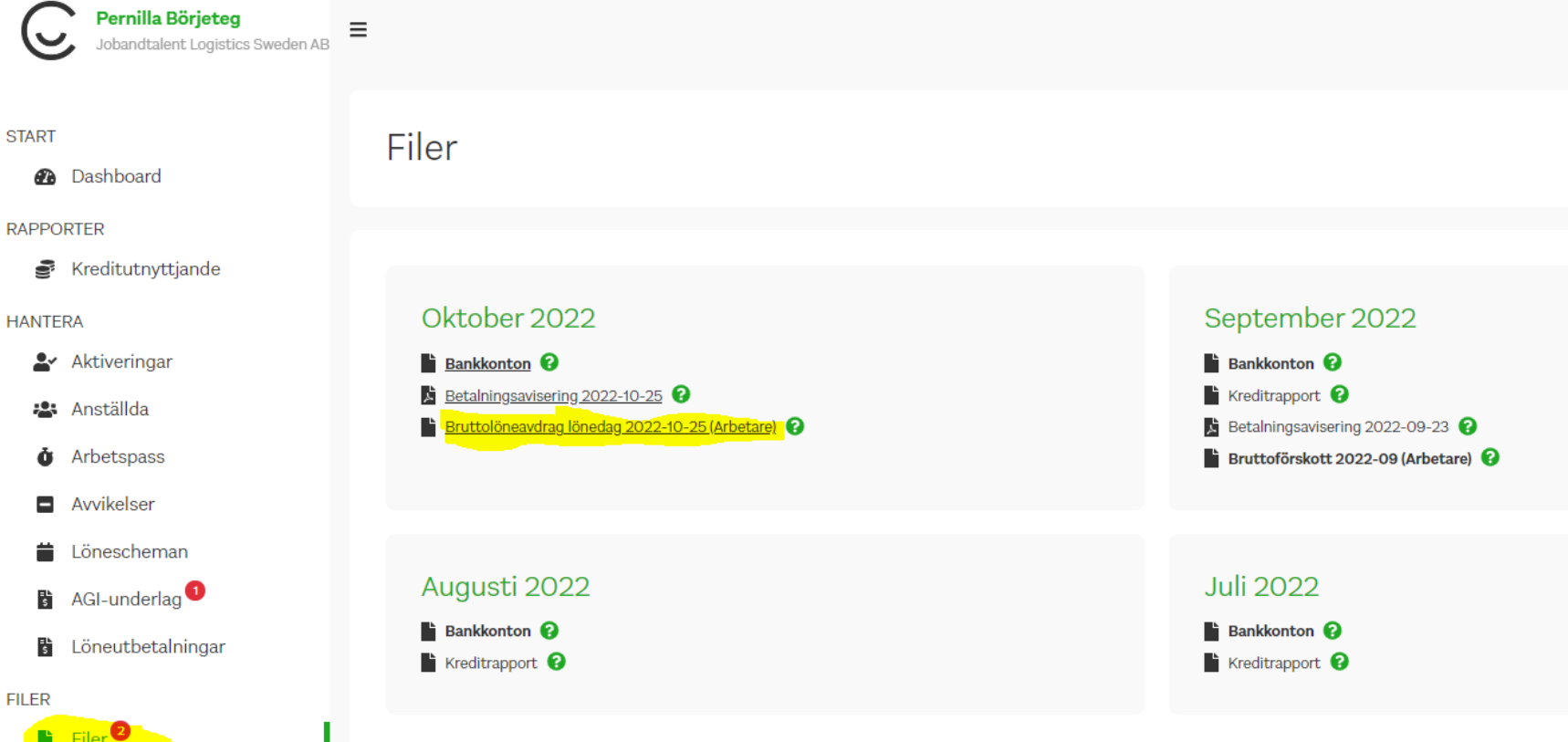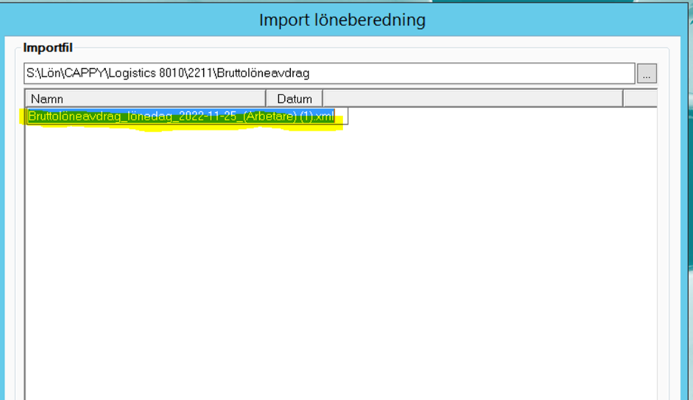 Gå till Filer och hämta korrekt bruttolöneavdragsfil. Utbetalningsdatumet står i filen så välj den filen som har utbetalningsdatum för nästkommande löneutbetalning som vi ska göra avdraget på.