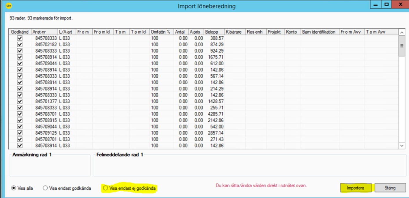 Tryck på "visa endast ej godkända" för att kontrollera att de inte finns några transaktioner där.