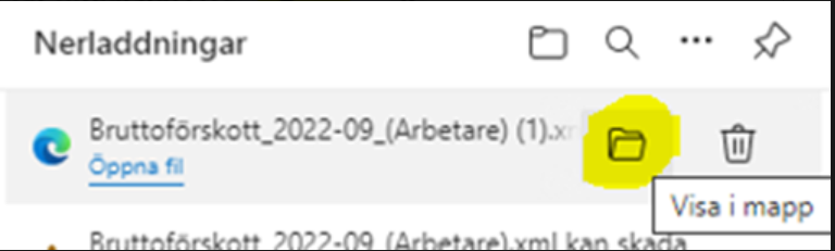 Tryck på mappen "visa i mapp". Filen kommer upp i hämtade filer och du kan sedan flytta den därifrån (kopiera eller klipp ut)