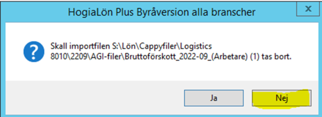 Frågan kommer upp om du vill ta bort den importerade filen- välj NEJ