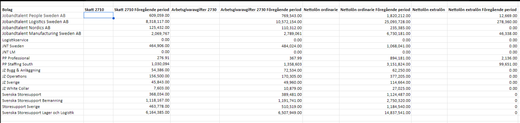 Nettolön ordinarie - kontrollera mot Summan i bankkoppling, i det här steget ska cellen vara vit.