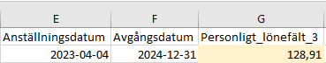 All info i denna vy kommer med anställd-flen, kontrollera när de bytt anställningsform då kan det bli lite galet. (Om personen fått slutlön tidigare, lägg in nytt startdatum på semesterfliken alternativt ändra anställningsdatum på första fliken "allmänt") UNDER UTREDNING