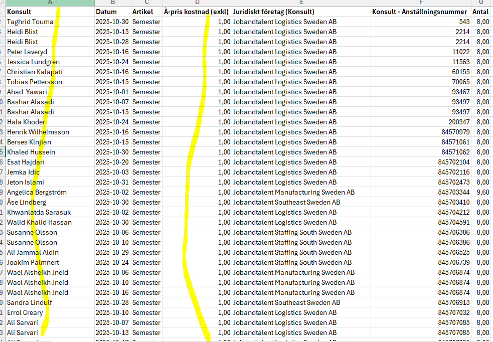 6. Ta ut en rapport från Hogia för antal semesterdagar, jämför mellan sheetsen.