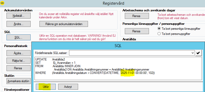 Ändra datum till den första i föregående månad (ändra INGET annat i texten) och klicka sedan på utför: