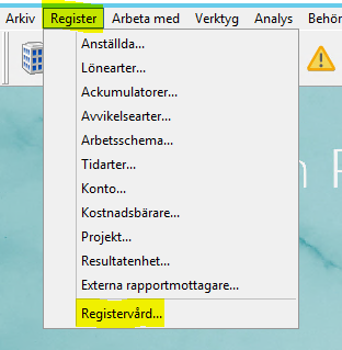 Gå in på Register - Registervård
