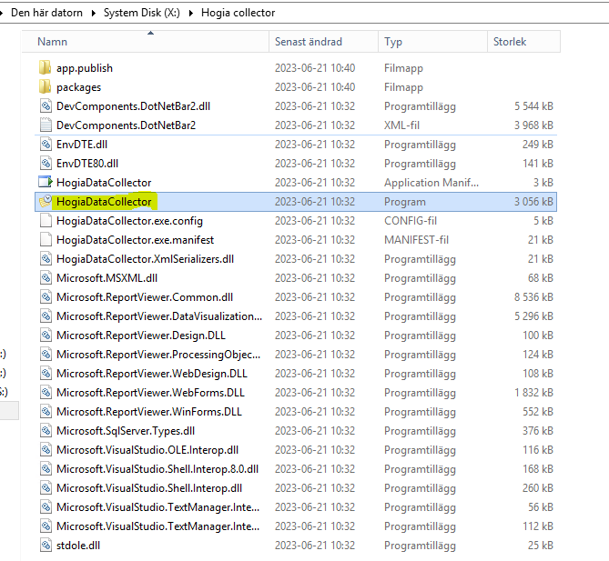 Har man inte den genvägen så öppnar man Mappar på fjärrskrivbordet och går in på Hogia Data Collector här: