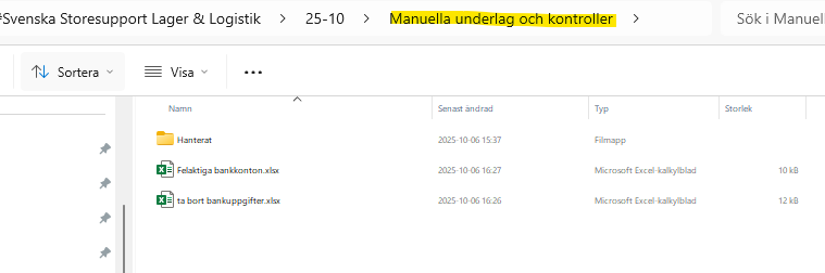 Titta i månadsmappen manuella underlag om det finns något som behöver hanteras manuellt.