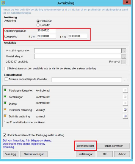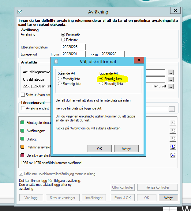 2. Välj preliminär avräkning, kontrollera att datumet högst upp är detsamma som utbetalningsdatum. Klicka sedan på OK och bildskärm