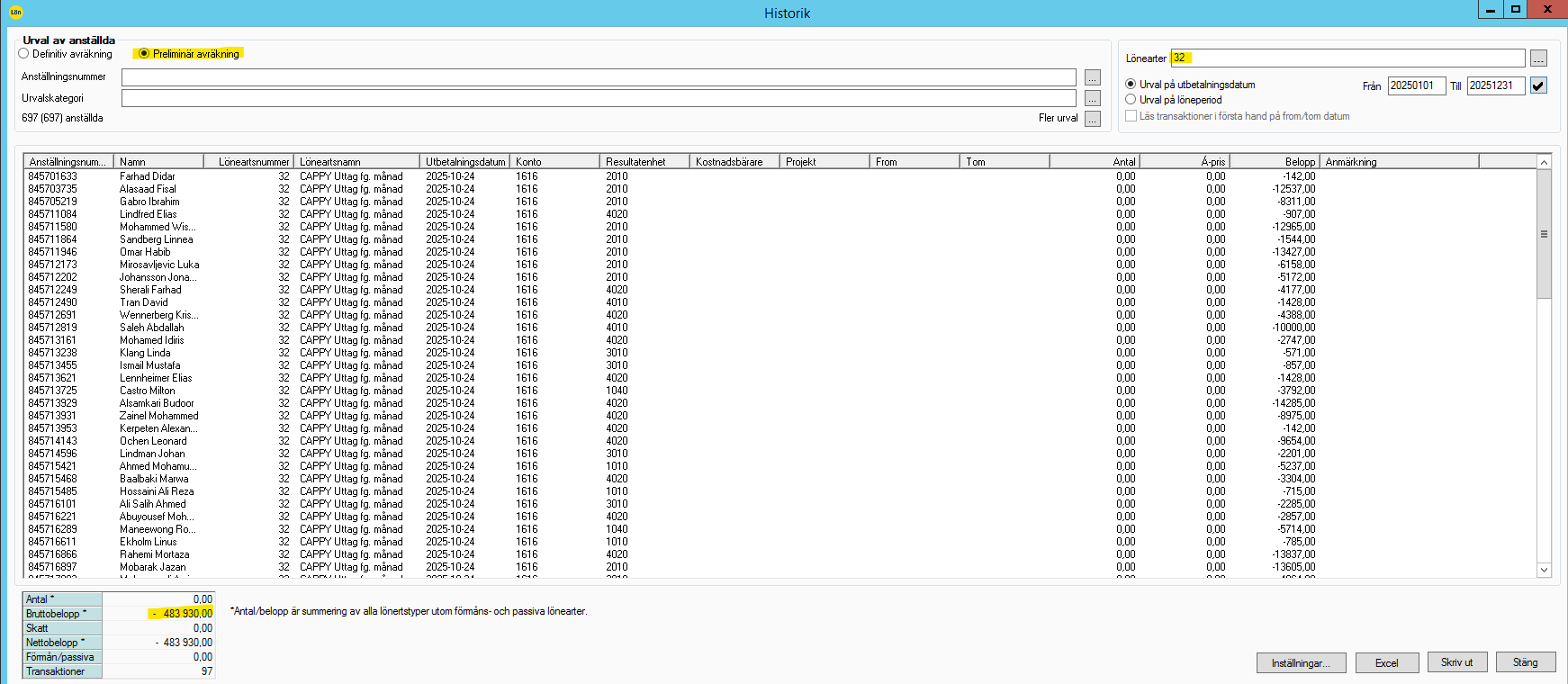 Export och spara ned den preliminära avräkningen under S:\Lön\Aktuellt bolag\ÅÅMM\Prel
