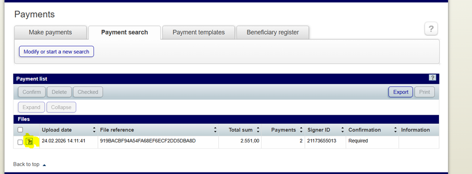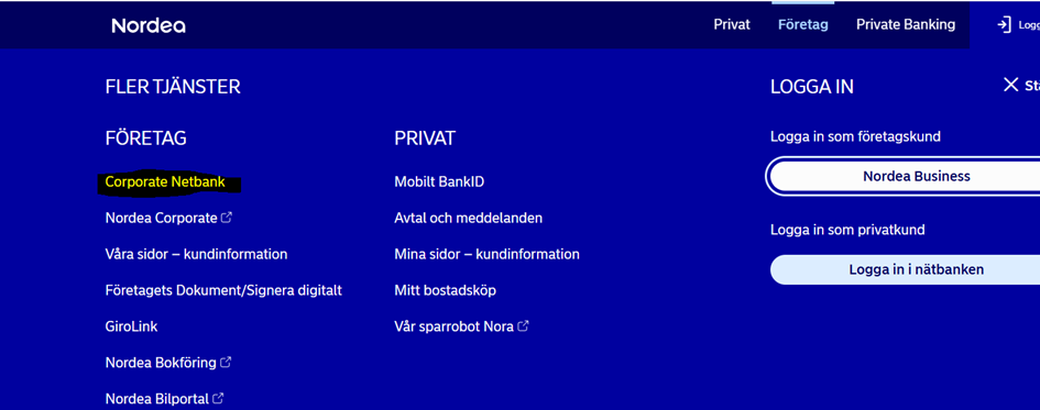 Skicka lönefil till bank (Nordea Corporate) Uppdaterad 2026-02-24 Logga in på banken:För att godkänna filen:Bocka i , och sen klicka på Confirm
