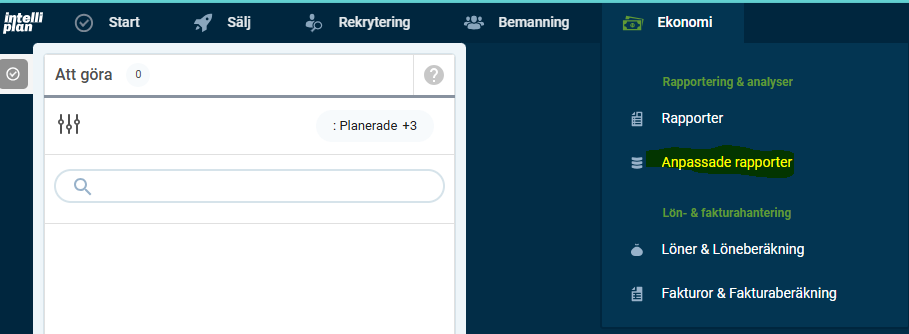 - Gå till "Ekonomi" och sedan anpassade rapporter